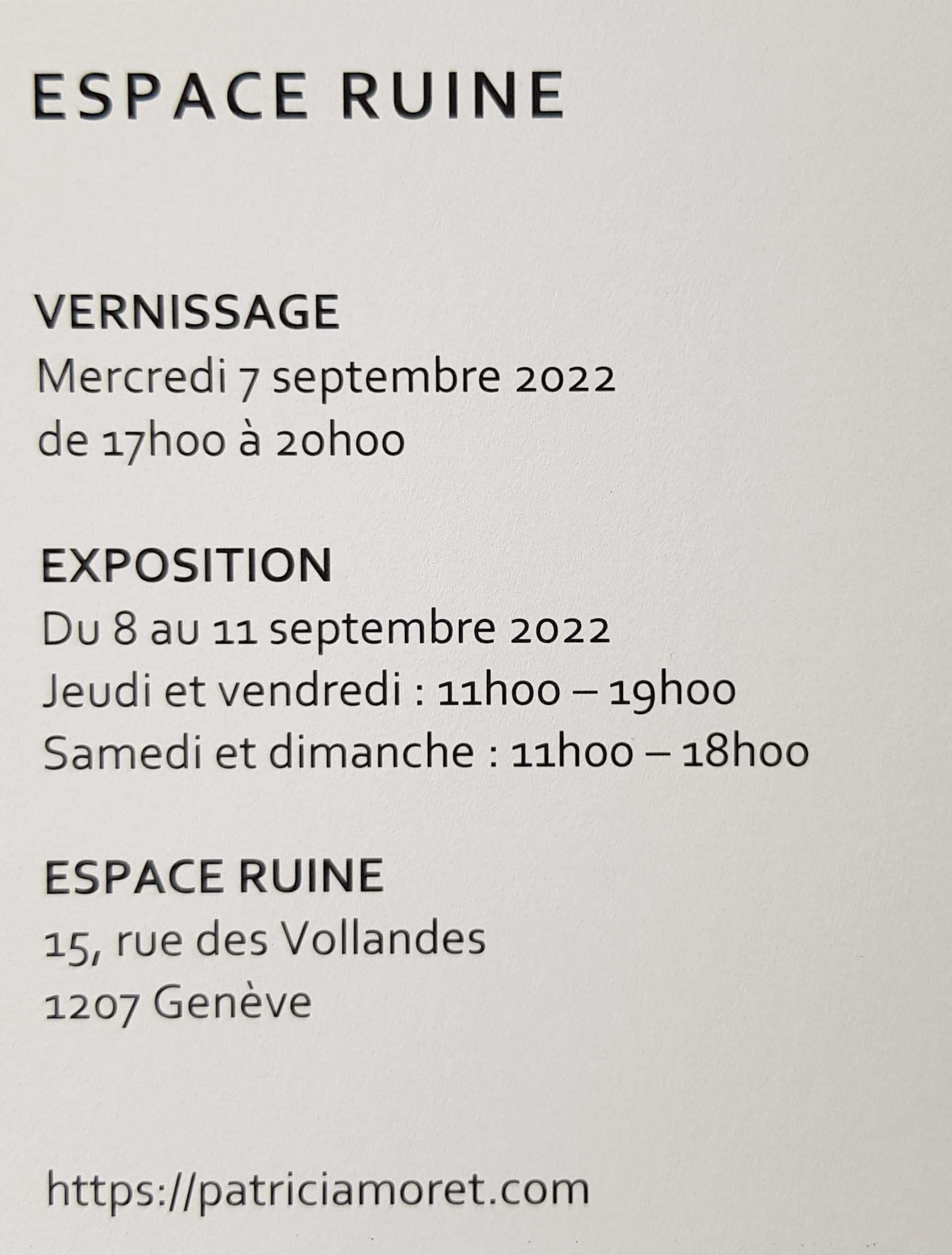 2022: exposition personnelle, Espace Ruine, Genève, Suisse